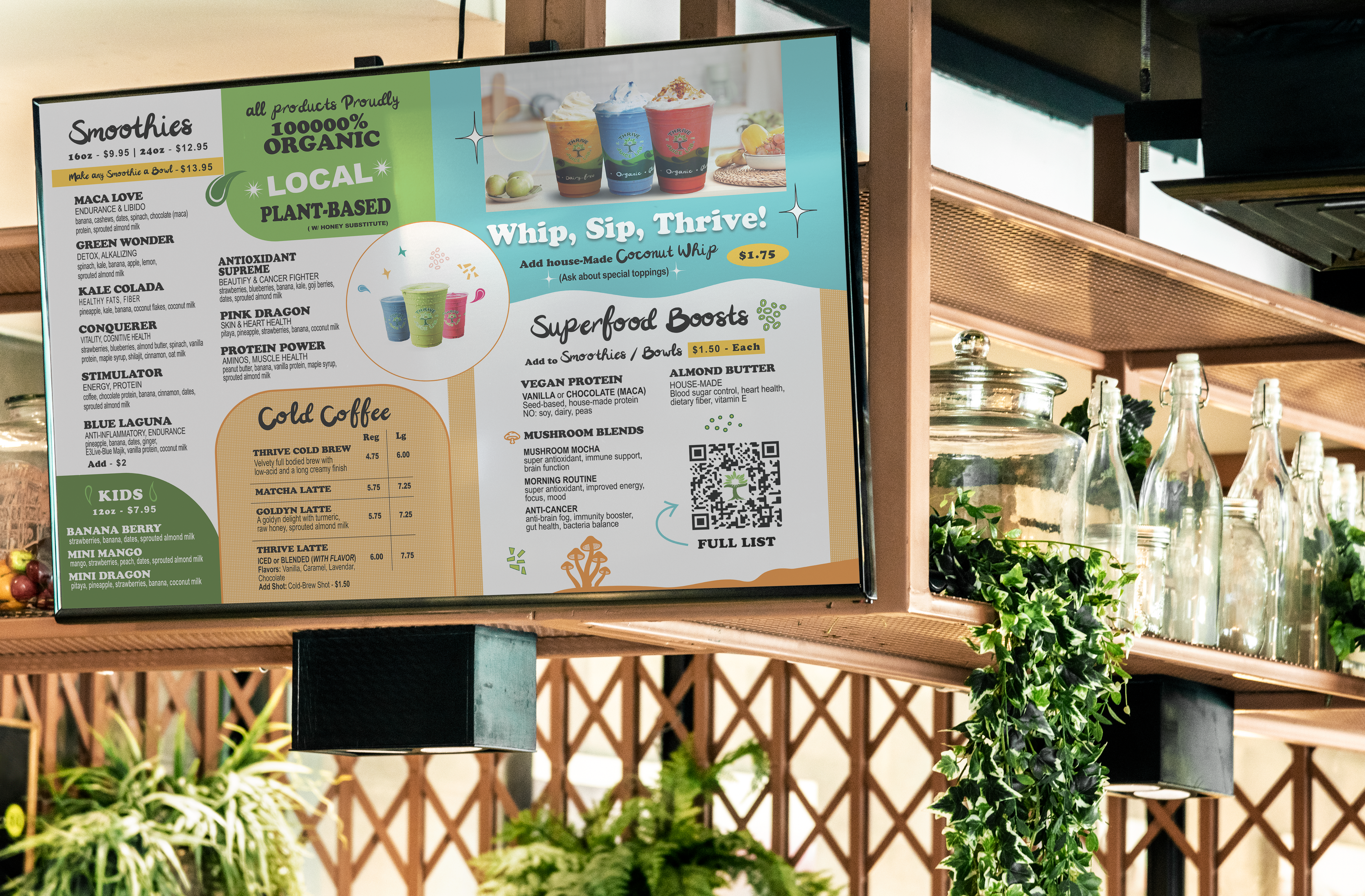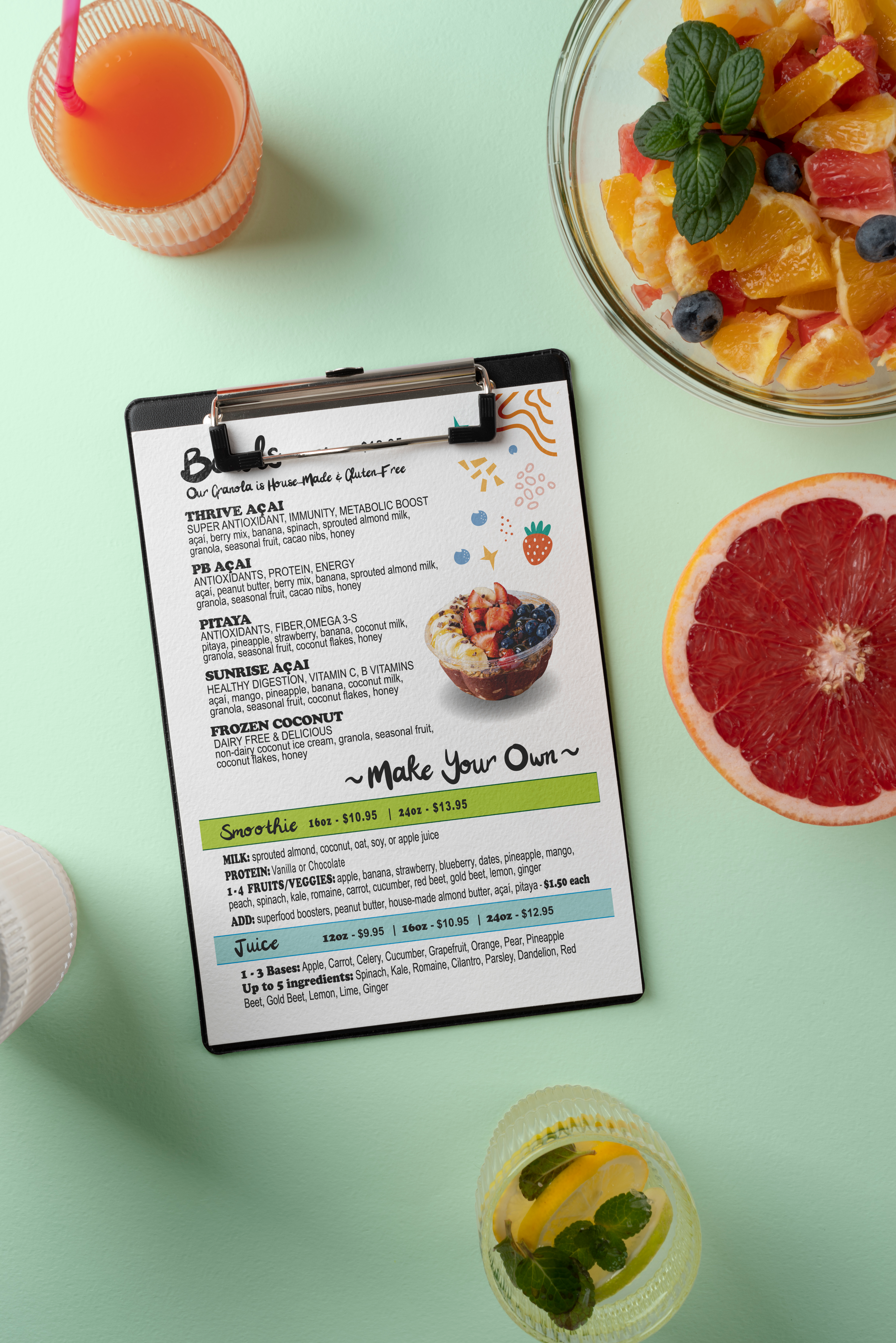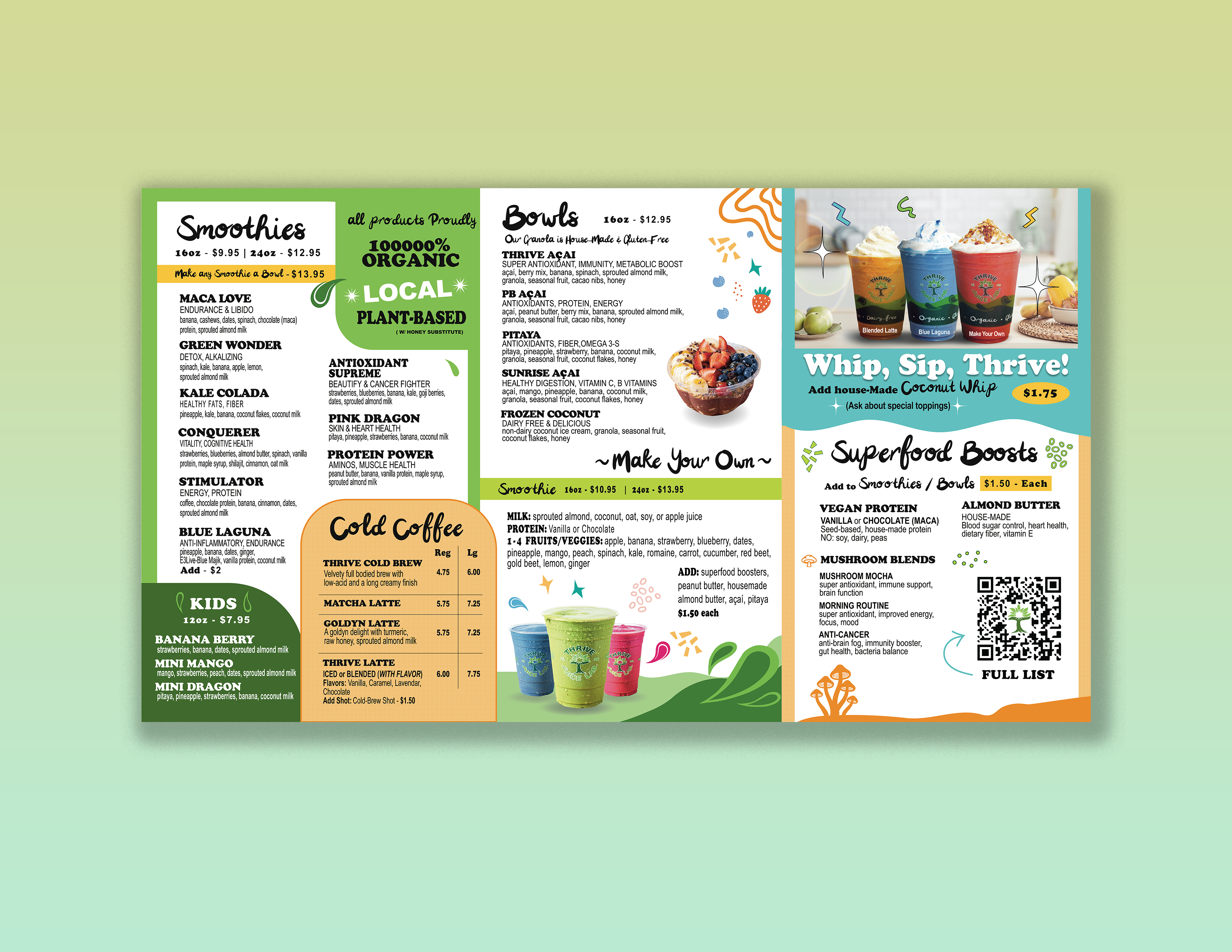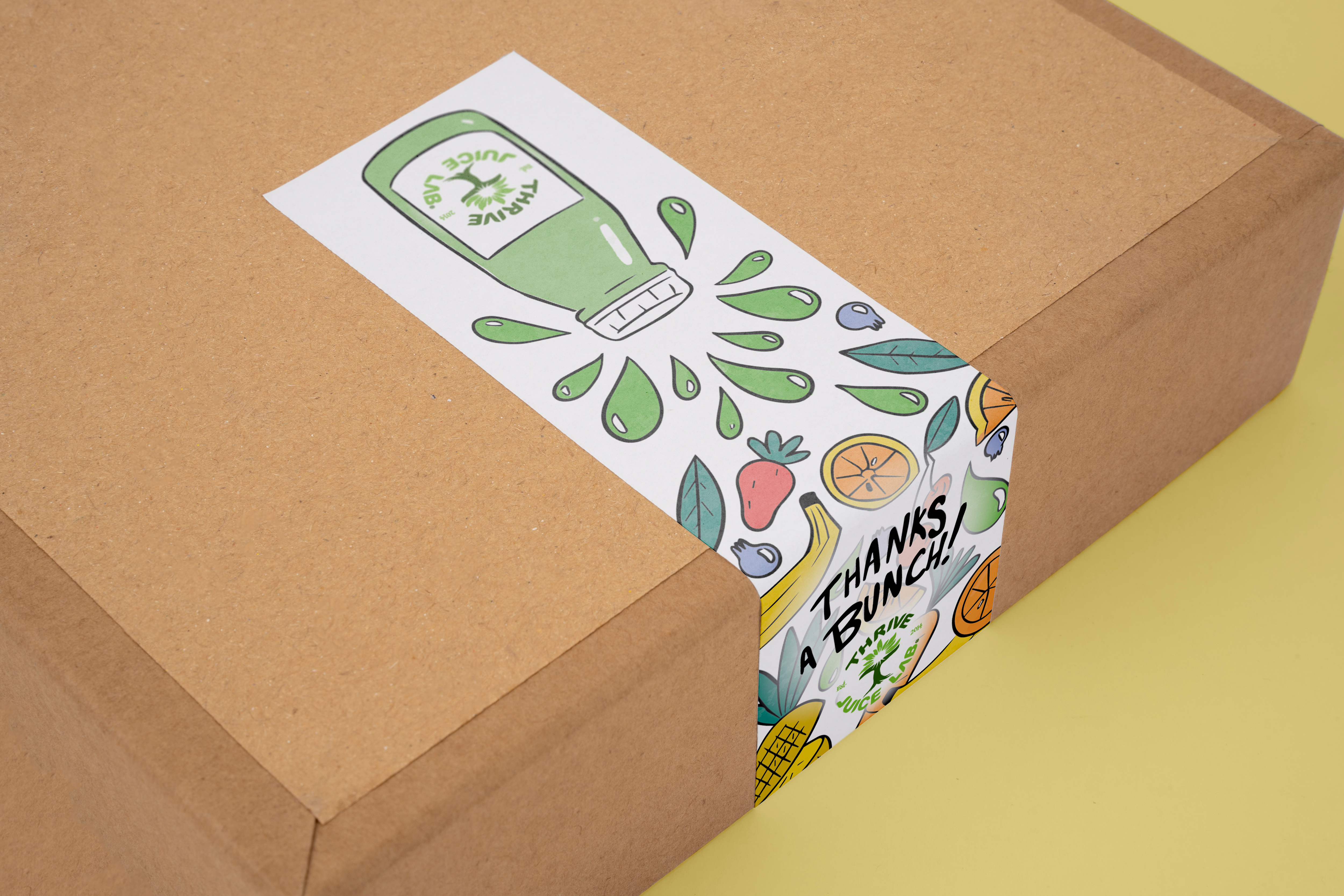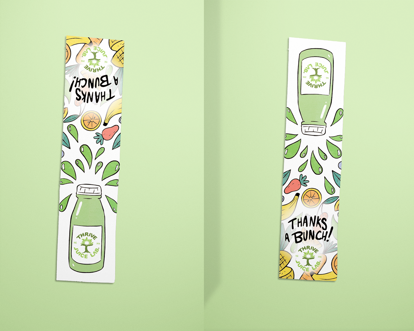 While this initially felt a bit like working in reverse, it ended up being a nice challenge. I decided to make a similar repeating pattern that echoed the jumble of fruit and vegetables from the sticker design, and a similar green juice splash at the bottom. The typography was customized to look more hand-drawn and playful, and the more rigid existing logo balanced out the overall feel of the bag design.